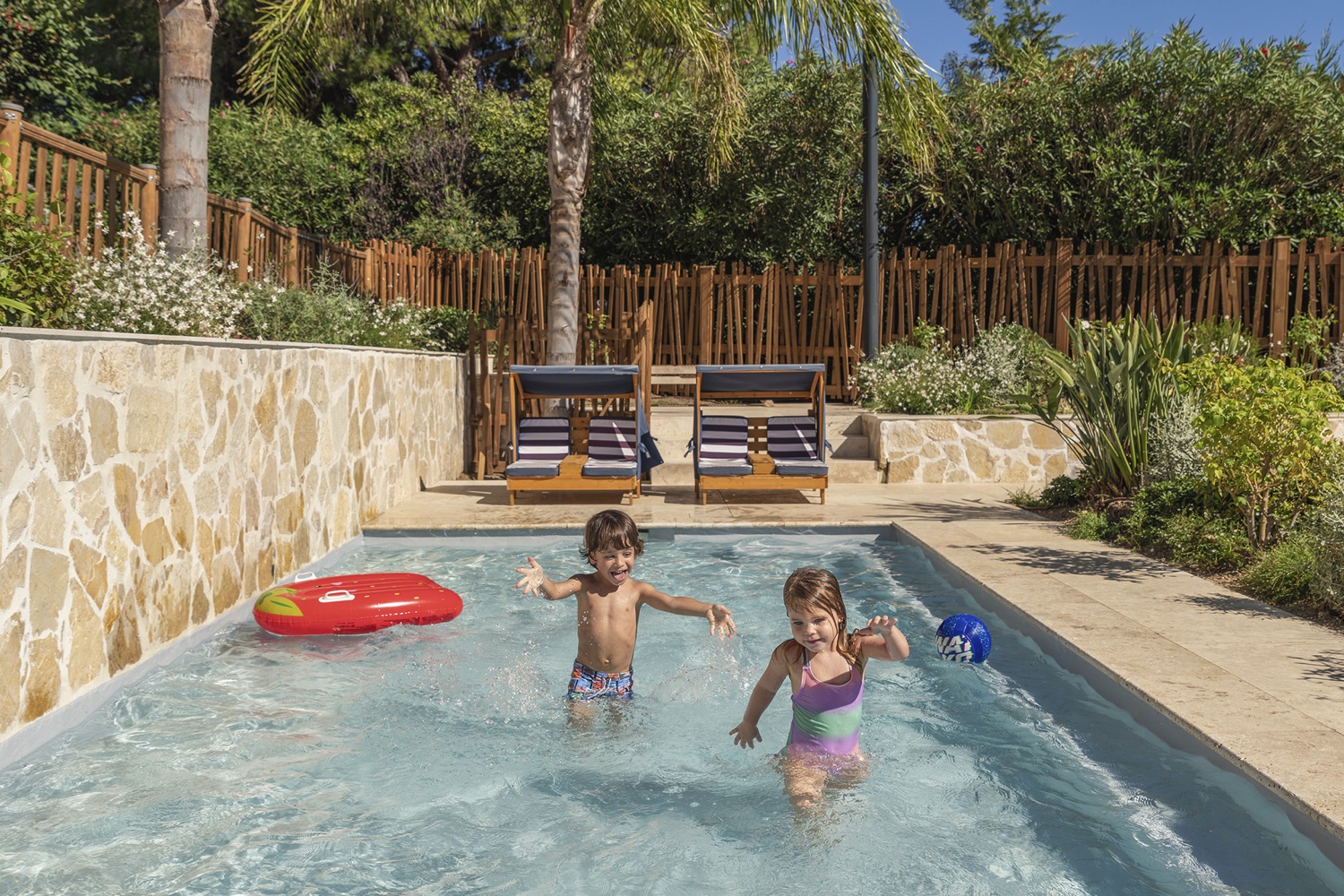 Ebenso spektakulär wie das gesamte Hotel ist auch der Pool des Airelles Le Grand Contrôle Château de Versailles. Inspiriert von den Marmorinnenhöfen des Schlosses ist der 15-Meter-Pool umrahmt von Marmorfliesen und antiken Statuen.