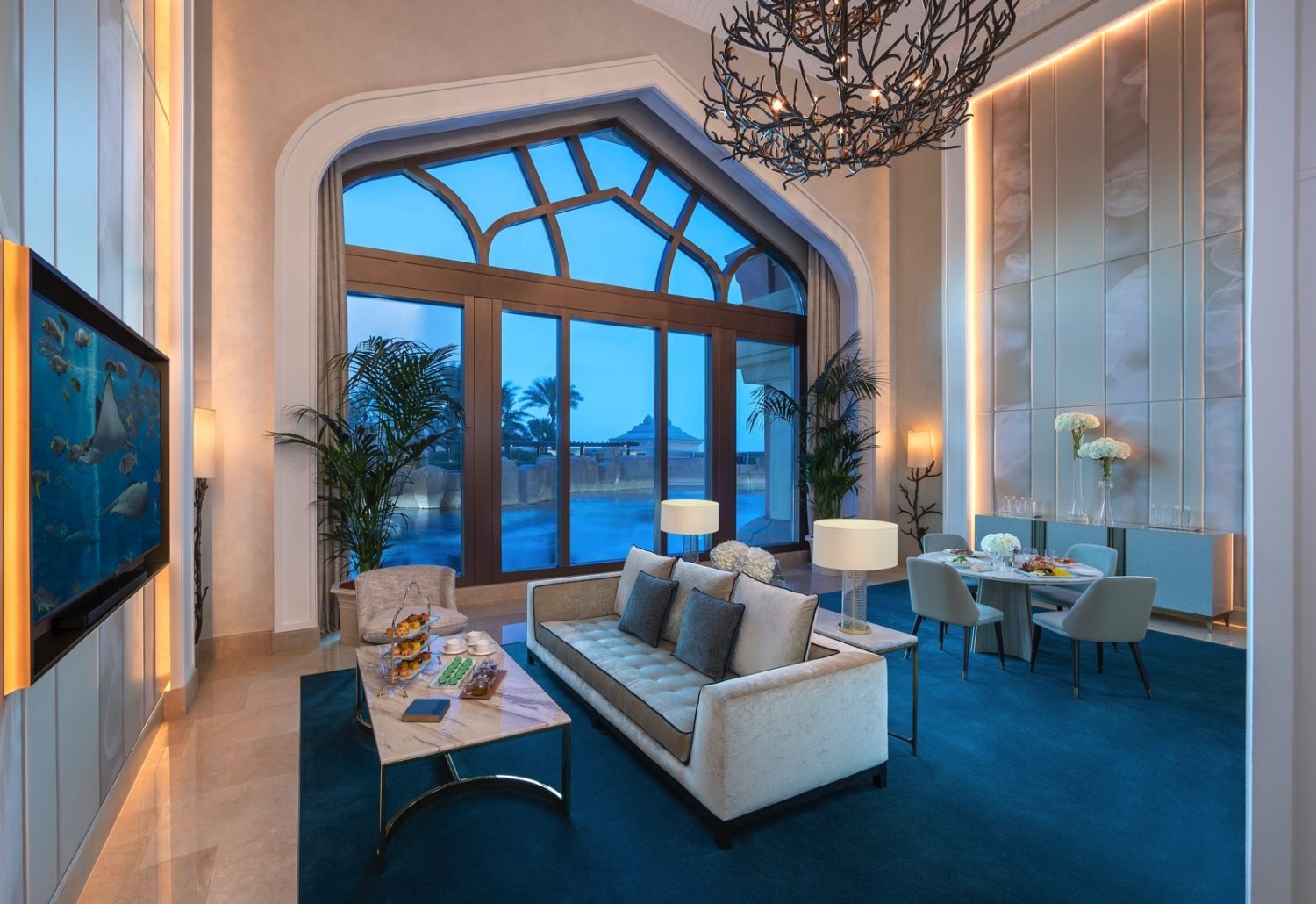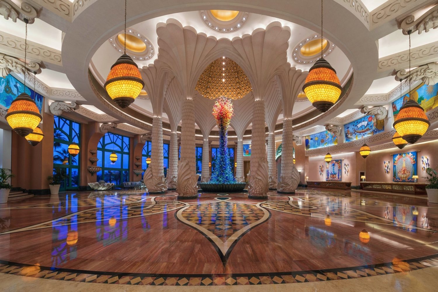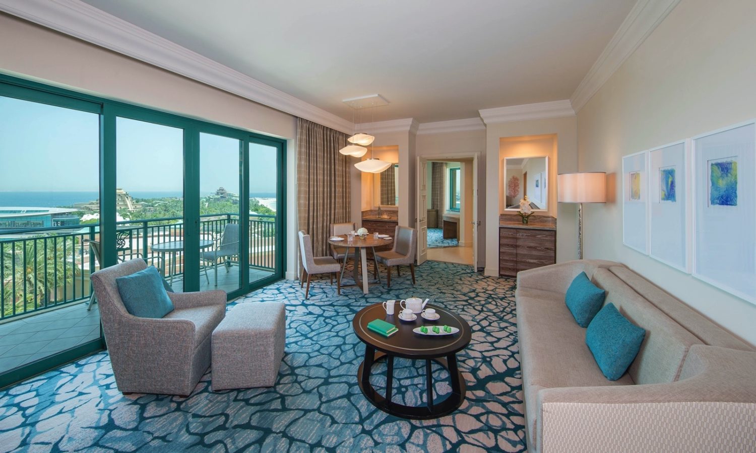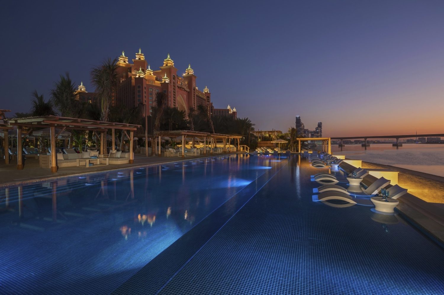 Mit über 1500 Zimmern und Suiten ist das Schwesterhotel des bekannten „Atlantis Bahamas“ das größte Resort in Dubai. Entsprechend großzügig sind die Freizeiteinrichtungen, die im Atlantis Hotel für beste Unterhaltung sorgen: ein Fitnessbereich mit Spa über zwei Etagen, ein Becken für interaktives Schwimmen mit Delfinen, „The Lost Chambers“ – ein Labyrinth durch riesige Aquarien mit dem versunkenen Erdteil Atlantis, 65 000 Fischen und anderen Lebewesen der Unterwasserwelt und nicht zu vergessen der größte Wasserpark Arabiens.