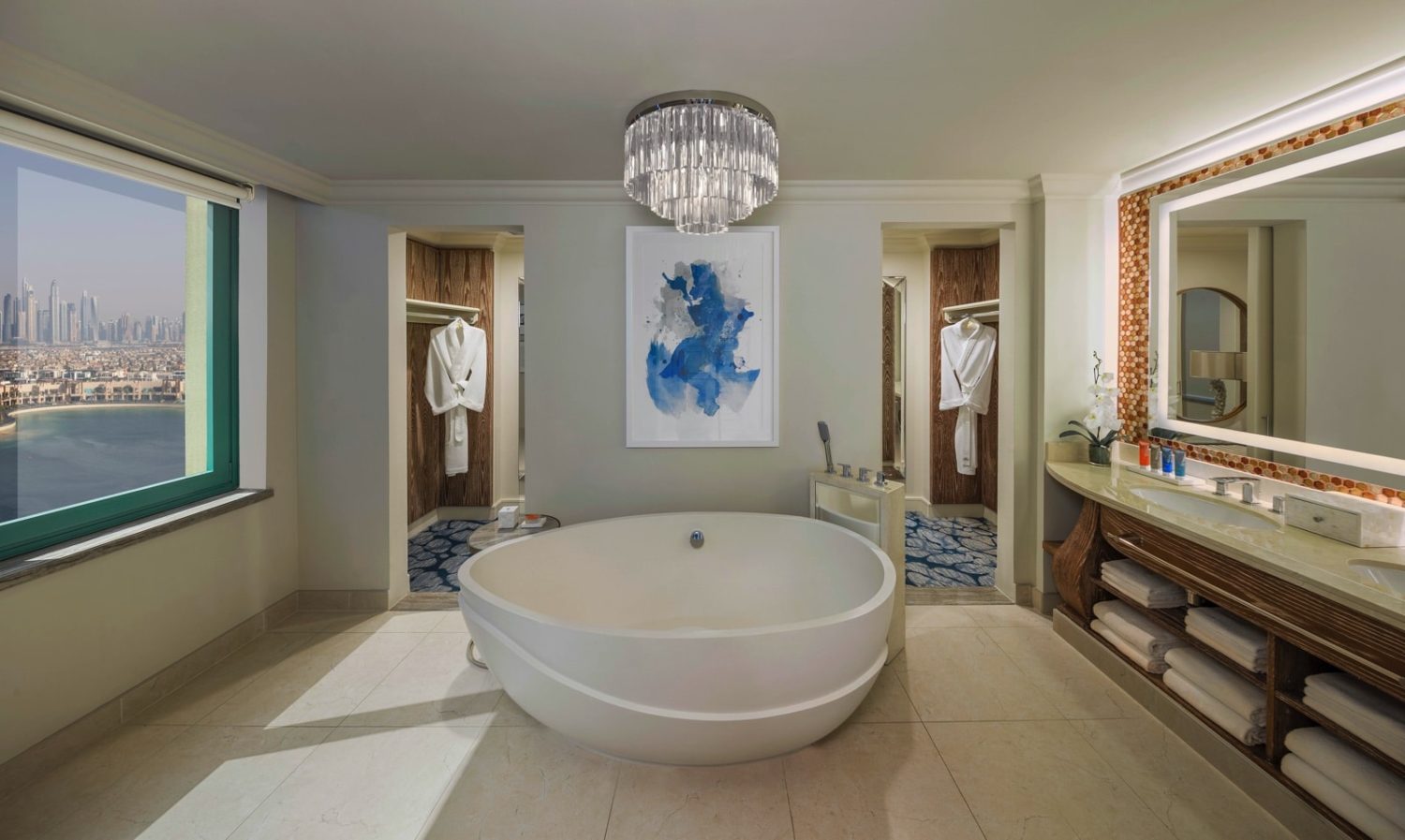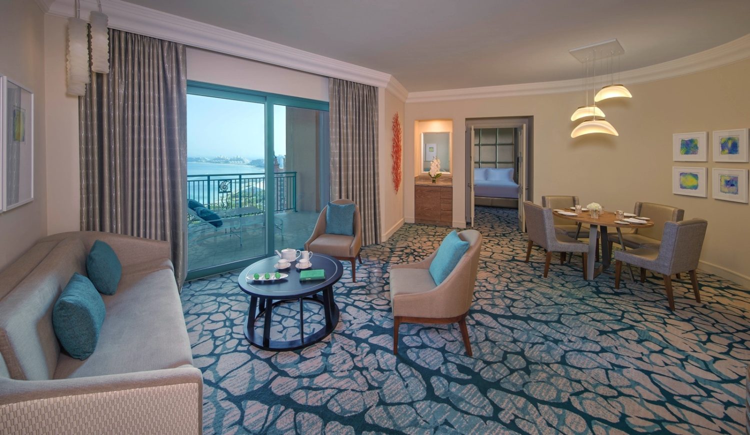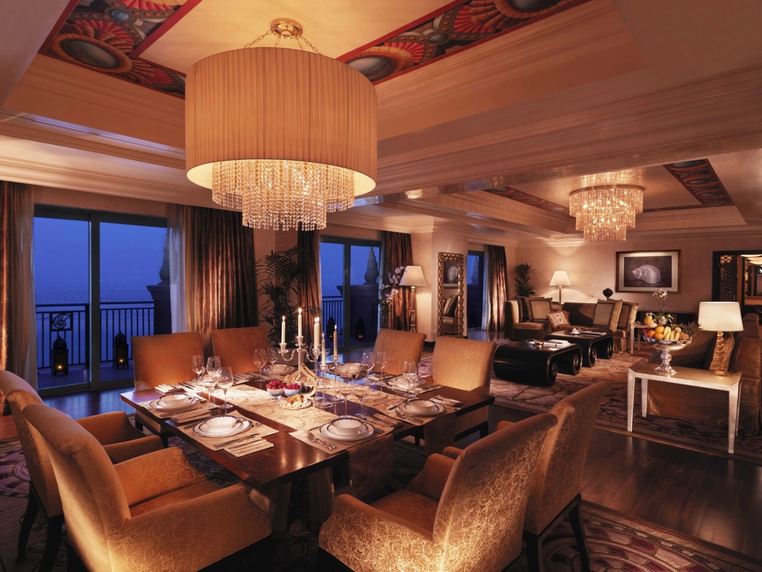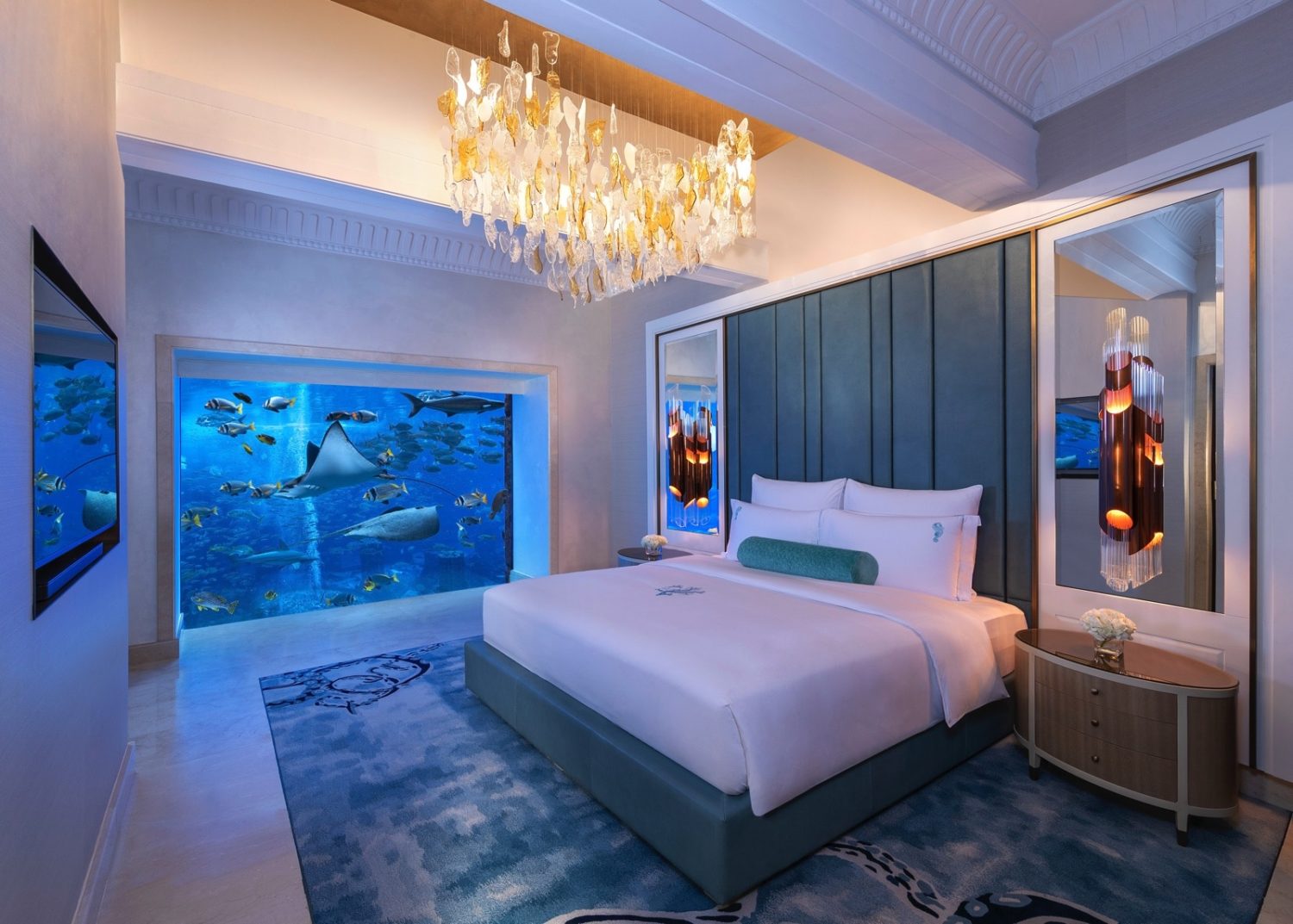Mit über 1500 Zimmern und Suiten ist das Schwesterhotel des bekannten „Atlantis Bahamas“ das größte Resort in Dubai. Entsprechend großzügig sind die Freizeiteinrichtungen, die im Atlantis Hotel für beste Unterhaltung sorgen: ein Fitnessbereich mit Spa über zwei Etagen, ein Becken für interaktives Schwimmen mit Delfinen, „The Lost Chambers“ – ein Labyrinth durch riesige Aquarien mit dem versunkenen Erdteil Atlantis, 65 000 Fischen und anderen Lebewesen der Unterwasserwelt und nicht zu vergessen der größte Wasserpark Arabiens.