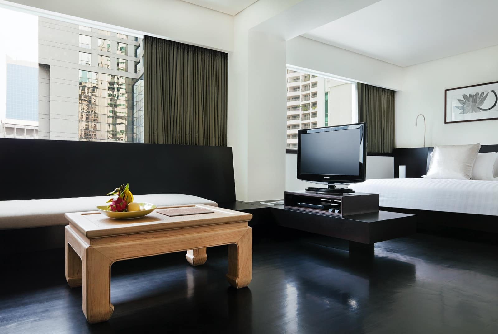 Die 171 weitläufigen, lichten Zimmer und Suiten mit XXL-Badezimmer sind durch Materialien wie Teakholz, Thaiseide sowie Metall geprägt und verströmen einen unaufdringlichen, heimeligen Luxus. Zur Standardausstattung gehört ein Bad mit Föhn und COMO Shambala Amenities, Klimaanlage, Telefon, Sat.-TV mit einem Flat Screen/DVD, WLAN, Safe, Bügeleisen, Minibar mit eigenen Kaffee- und Teekocher und eine Yoga Matte. Es stehen folgende Zimmerkategorien zur Auswahl: Die City-Zimmer (ca. 29 qm) verfügen über ein 1,40 m breites Queensize Bett und ein kleines Bad (mit kombinierter Dusche und Badewanne). Die Studio-Zimmer sind etwas größer (ca. 43 qm) und bieten ein Kingsize Bett sowie ein Bad mit Dusche und separater Badewanne. Die Metropolitan-Zimmer (ca. 51 – 54 qm) sind sehr geschmackvoll in edlem dunklem Teak Holz gehalten und mit Kingsize Bett bzw. zwei einzelnen Betten ausgestattet. Die Terrace-Suiten können zusätzlich eine eigene Terrasse aufweisen. Die Penthouse-Suiten bestechen durch ein getrenntes Wohn- und Schlafzimmer, ein weiteres Gästezimmer und ein sehr großes luxuriöses Badezimmer.
