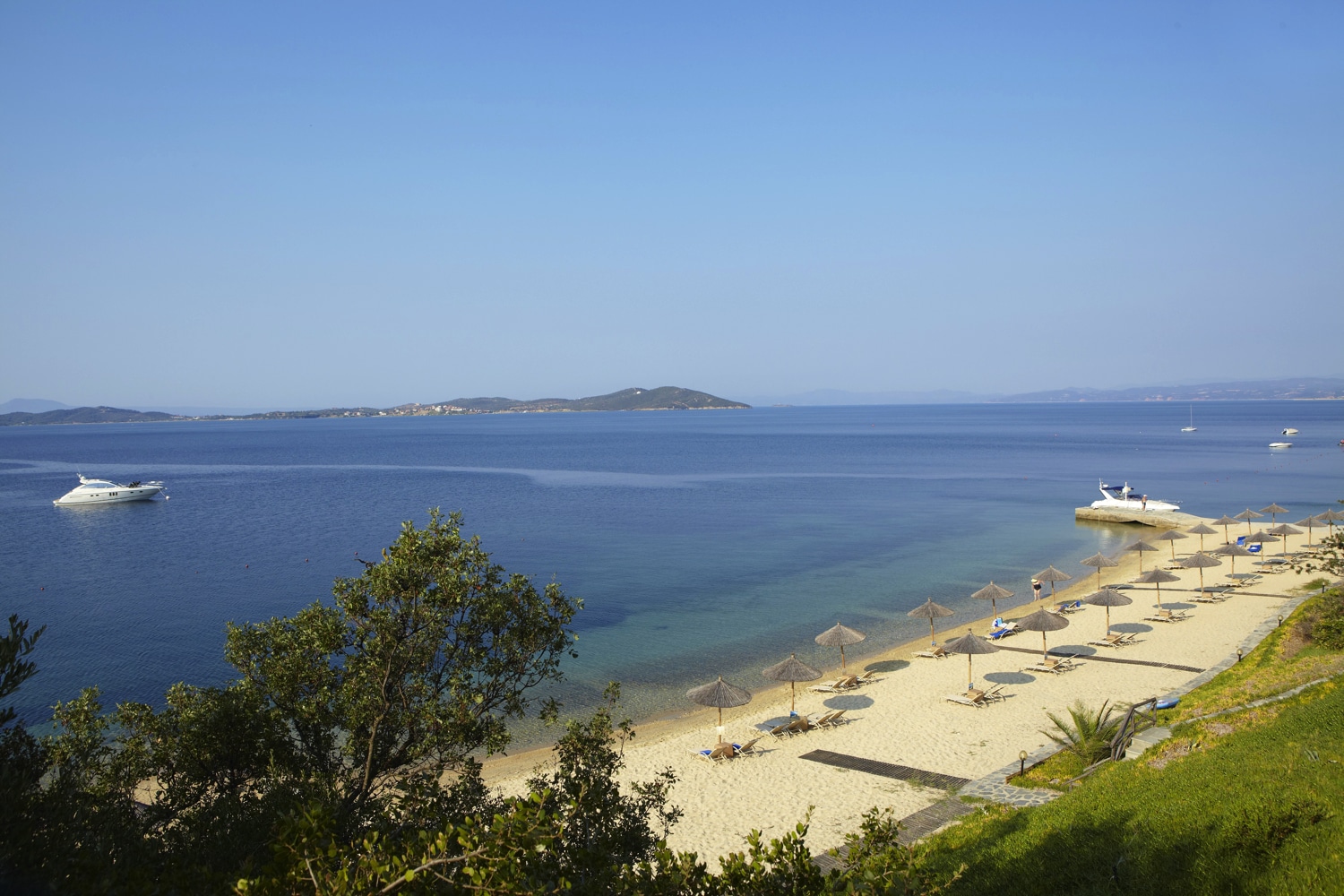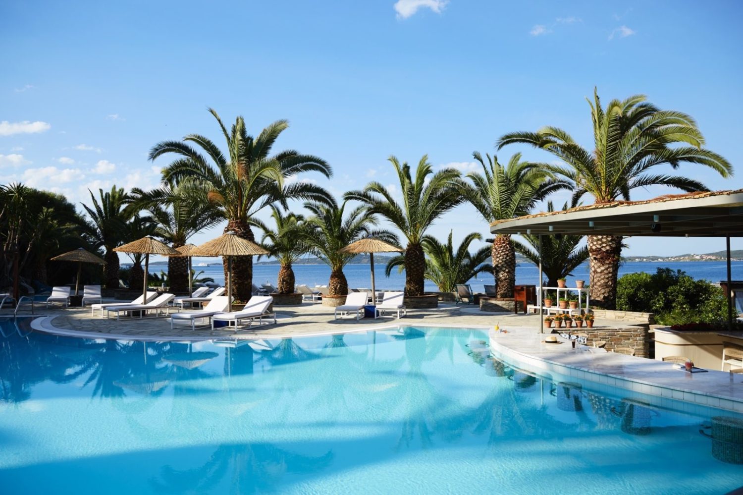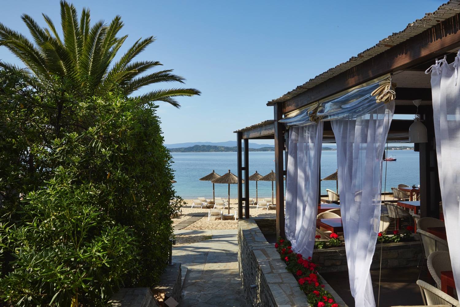 Dieses mehrfach ausgezeichnete „Small Luxury Hotel of the World“ liegt inmitten duftender Kiefernwälder, Oliven- und Palmenhaine direkt an den goldenen Stränden der Halbinsel Chalkidiki im grünen Norden Griechenlands. Die Nähe zum heiligen Berg Athos und dem Fischerdörfchen Ouranoupolis, einem der schönsten Orte auf Chalkidiki, verleihen diesem Resort einen seltenen Zauber. Dieser verfügt dank der herzlichen Gastfreundschaft der Inhaberfamilie Tornivoukas, die das Hotel in dritter Generation führt, über eine besonders warme Note. Tatsächlich ist das Eagles Palace eines der wenigen Luxushotels, das Stilsicherheit, Komfort, Authentizität und Nachhaltigkeit aufs Elegenateste miteinander zu vereinbaren weiß. Schon illustre Persönlichkeiten wie Maria Callas wussten dies zu schätzen und zählten zu den Stammkunden des Hauses. Das verwundert nicht: Der im modernen mediterranen Stil erbauten Anlage ist ein 1,5 Kilometer langer, feinsandiger Strand vorgelagert, der zu den schönsten Stränden Griechenlands zählt. Darüber hinaus gehört auch der Elemis Spa zu den ersten Wellness-Adressen in Griechenland. Zudem ist das Resort mit der weitläufigen Gartenanlage, der exzellenten Gastronomie und der kreativen Kinderbetreuung eines der wenigen Öko-Resorts Europas. Auch über die Grenzen des Resorts hinaus gibt es diverse Highlights zu entdecken, denn die Region hat kulturell und landschaftlich viel zu bieten. Zu den Ausflugsmöglichkeiten zählen der Karidi Beach, der Strand Vourvourou, das Kloster Moni Megistis Lavra sowie das schöne Thessaloniki. Zum sehenswerten, nur 4 km entfernten Ort Ouranoupolis können Gäste mit dem kostenfreien Hotel-Shuttle fahren.