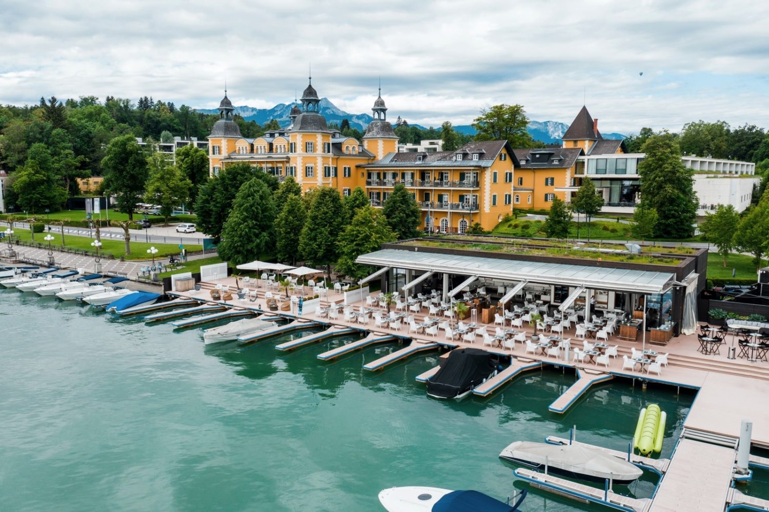 Das Falkensteiner Schlosshotel Velden verfügt über zwei herrliche Panorama-Außenpools und einen Innenpool. Vom Beach Club des Schlosshotels haben Gästen außerdem direkten Badezugang zum See.
