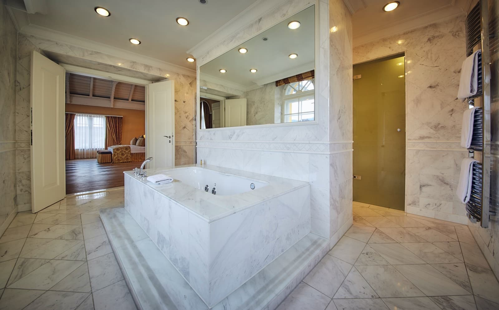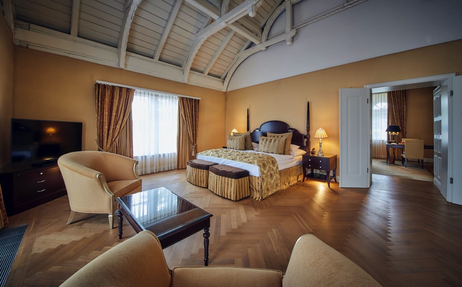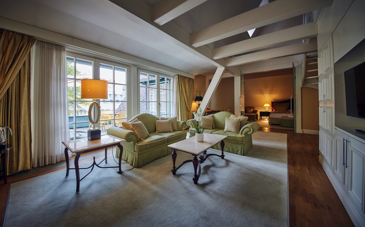 Superbehaglich eingerichtete Suite mit hohen Decken, die nostalgische Grandezza mit modernstem Luxus vereint. Mit privater Sauna und Whirlpool und schöner Dachterrasse.