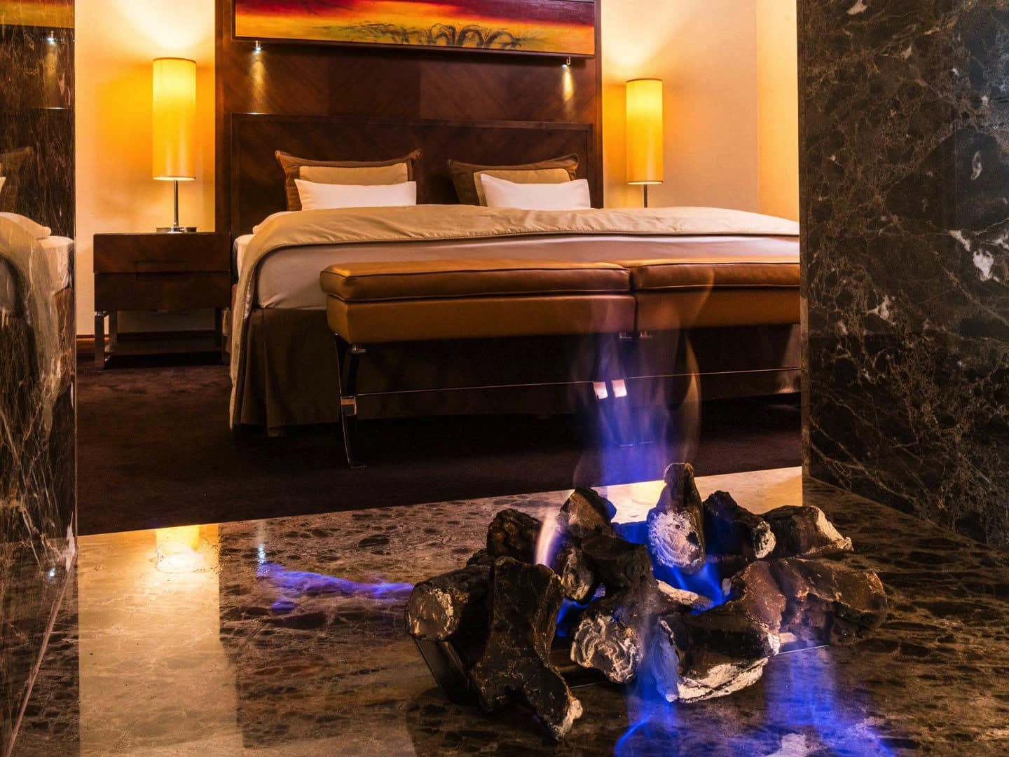 Im historischen Schloss oder im modernen Gebäude mit Blick auf den Rosengarten oder den Schlosspark gelegen. Mit Kingsize-Betten.