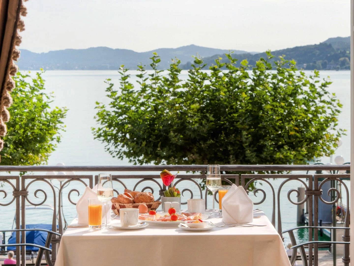 Prachtvolle Suite im historischen Schloss mit separatem Wohnzimmer und großem Balkon mit Blick auf den Wörthersee.