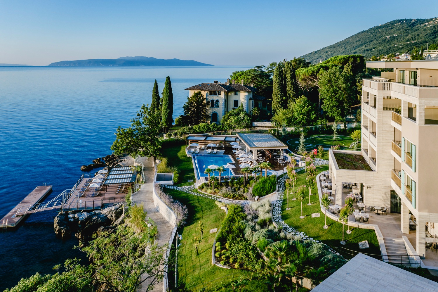 Das Boutique-Hotel mit seinen 16 erlesenen Zimmern und Suiten, Top-Spa, Riva-Boutique und elegantem Gourmet-Restaurant, nebst Riva-Bar und Zigarren-Lounge liegt umgeben von einer gepflegten Parkanlage mit Pool und Privatstrand an einem betörend schönen Küsten-Abschnitt, der immer noch den Glamour einer der ersten Luftkurorte Europas atmet. Der Facettenreichtum dieser Region eröffnet Gästen ein unglaubliches Aktivitätenspektrum, das vom hauseigenen Concierge individuell kuratiert und organisiert wird: Von Wandertouren im nahegelegenen Učka-Gebirge und Outdoor-Abenteuern in den immergrünen Wäldern von Gorski Kotar bis zum Insel-Kreuzfahrt mit dem privaten Riva-Rennboot bis hin zu Streifzügen durch die vielen sehenswerten Ortschaften Istriens. Dieses Hotel regt die Fantasie an und nährt die Seele – ein Schatz, den wir nur wärmstens empfehlen können.