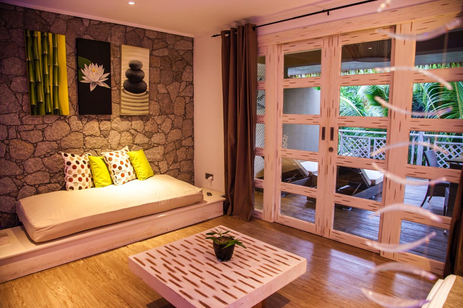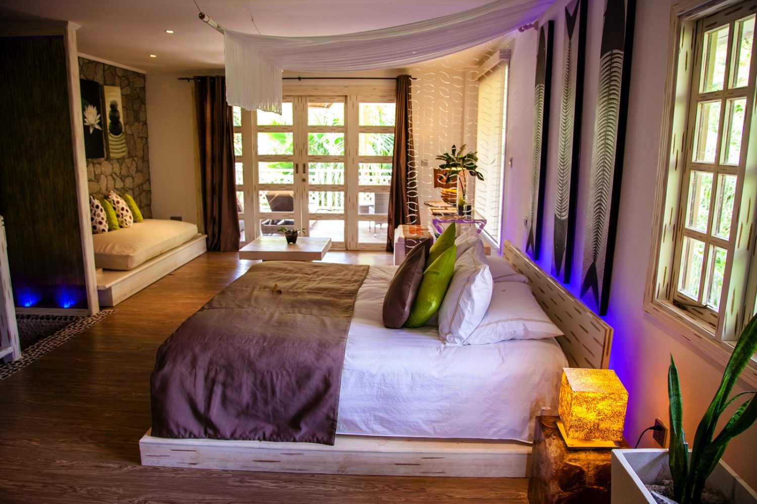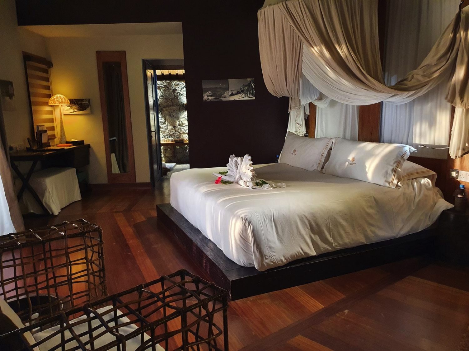 Die Anlage besteht aus insgesamt 55 Zimmern und Villen in verschiedener Größe, Lage und Ausstattung, die auf eine angenehme Art Komfort und Eleganz mit traditionellem Stil vereinen. Zur Standardausstattung gehören eine Terrasse mit Gartenmöbeln, Klimaanlage, Außendusche, separate Toilette, Föhn, Plasma-TV, Wifi-Internetzugang gegen Gebühr, Telefon, Safe, Minibar und Kaffee- und Teebereiter. Die neu renovierten Garden Villas (60 – 70 qm) bieten Ihnen einen geräumigen Schlafraum mit angeschlossenem Badezimmer (ohne Wanne), eine Außendusche sowie einen Balkon oder Terrasse. Bei den Villas de Charme (70 qm) haben Sie je nach Verfügbarkeit die Auswahl zwischen Ausblick auf den Strand, den Sonnenuntergang oder den üppigen tropischen Garten. Zusätzlich gibt es hier ein Außenbadezimmer mit Dusche und Badewanne, eine große Außenterrasse/Balkon und einen gemütlichen kleinen Wohnbereich. Eine Variante dieser Ausstattung bilden die Villas de Charme „Elegance“ (90-110 qm), die auf einem Hügel in die idyllische Tropenvegetation eingebettet sind. Hier kommen Sie zusätzlich in den Genuss eines Whirlpools. Paradiesischen Komfort und viel Platz verspricht die Villa Présidentielle „Ile d’Abondance“ (250 qm), mit 3 Schlafzimmern, sowie einer großen Terrasse mit eigenem Swimmingpool, Whirlpool und Ruhebereich. Ein eigener Butler steht 24 Stunden am Tag zu Ihrer Verfügung.