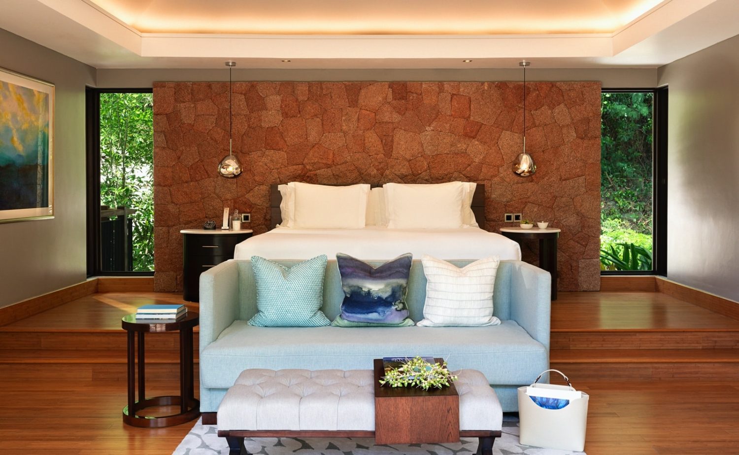 Die 86 geräumigen und äußerst stilvoll eingerichteten Villen liegen herrlich abgeschieden über die großzügige Gartenlage verstreut. Sie verfügen alle über ein Schlafzimmer mit Kingsize-Bett oder zwei Queensize-Betten, einen begehbaren Kleiderschrank, Telefon, WLAN, Plasma-TV, DVD-Player, mp3-Docking Station, Minibar, Kaffee-/Teezubereiter, Safe, Klimaanlage sowie ein elegantes Bad mit Panoramablick, Föhn und einen Balkon mit Liegestühlen, überdachtem Pavillon mit Tagesbett und Essbereich, einen privaten Plunge-Pool und eine Outdoor-Regendusche. Zusätzlich stehen allen Gästen 24 Stunden am Tag ein privater Butler sowie ein Elektrocart-Service innerhalb der Anlage zur Verfügung.