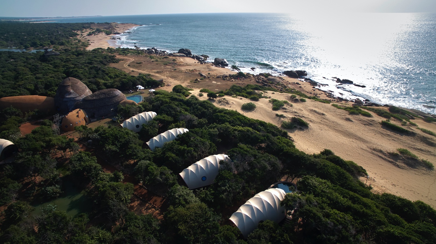 Dort, wo Dschungel und Meer aufeinander treffen, findet man die Resplendent Ceylon Wild Coast Tented Lodge, Sri Lankas Top-Safari-Destination. Dieses Luxus-Zeltcamp fügt sich durch seine durchdachte Architektur harmonisch in die umliegende Natur ein und zelebriert einen nachhaltigen Safari-Tourismus. Gewohnt wird in einzelnen Bungalows, den Cocoons, die stilvoll und zeitgemäß eingerichtet sind, dabei aber trotzdem mit dem klassischen Kolonialstil eine Hommage an historische Reisen signalisieren. Für kulinarische Genüsse sorgt ein Restaurant und eine Bar, das Resort verfügt über ein Spa und einen Gemeinschaftspool und liegt direkt an der unberührten Küste. Von hier aus startet man in die umliegenden Nationalparks und taucht ein in die faszinierende Natur und das Leben Sri Lankas.