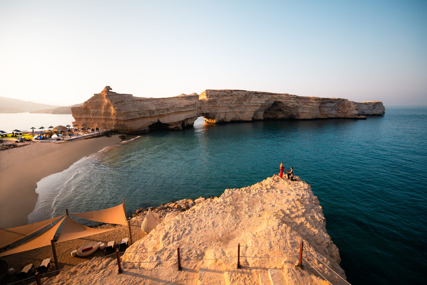 Nur knapp 15 Minuten außerhalb von Muscats Altstadt thront über einer abgeschiedenen Privatbucht das Shangri-La Al Husn Resort & Spa hoch oben auf einer Klippe mit herrlichem Rundum-Blick über den Ozean und die Berge. Die Anfahrt zu diesem exquisiten Adults-only-Hotel führt durch eine pittoreske Berglandschaft. Schon von Weitem sieht man den lachsfarbenen Palast, der farblich wunderbar mit der umliegenden Berglandschaft harmoniert. Das Innenleben des Palastes ist geprägt von omanischem und islamischem Design. Die großzügigen Zimmer beherbergen lokale Kunstwerke aus Holz und die Ruhe am Infinity Pool wird höchstens durch den Gesang von vorbeifliegenden Vögeln unterbrochen. Gäste des Al Husn können an einem exklusiven, von imposanten Sandsteinfelsen eingerahmten Strand baden (mit eigenen Beachrestaurant). Gäste können nicht nur in den hoteleigenen Restaurants auf Gourmetniveau speisen, sondern haben auch Zugang zu allen Einrichtungen des Schwester-Resorts Shangri-La Barr Al Jissah, das sich in zwei Teilbereiche aufgliedert: das für Familien konzipierte Shangri-La Al Waha (4 Sterne) und das Shangri-La Al Bandar (5 Sterne) mit dem Lazy River und einer Vielzahl an Restaurants. Um das Wohl seiner Gäste kümmert sich der GM des Hauses täglich von 15:45 bis 16:45 Uhr beim traditionellen Afternoon-Tea auf der Sultanah Terrasse höchstpersönlich. Von 18:00 bis 19:00 Uhr gibt es jeden Abend im Courtyard ein wunderbar appetitliches Gäste-Apero auf Einladung des Hauses mit Weinen, Bier und alkoholfreien Getränken. Zu den weiteren Annehmlichkeiten gehört eine Bibliothek, eine Zigarren-Lounge, ein Business Center mit modernster Konferenztechnik sowie mehrere Shops. Keine Frage, für Ruhesuchende ist das Shangri-La Al Husn Resort & Spa ein Eldorado im Oman.