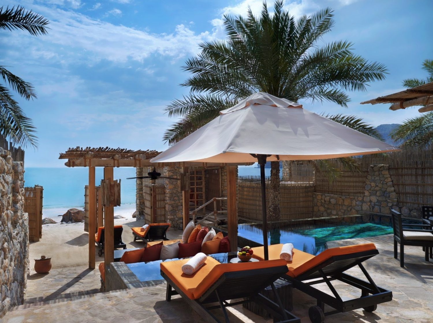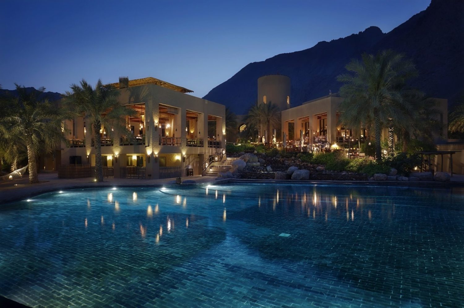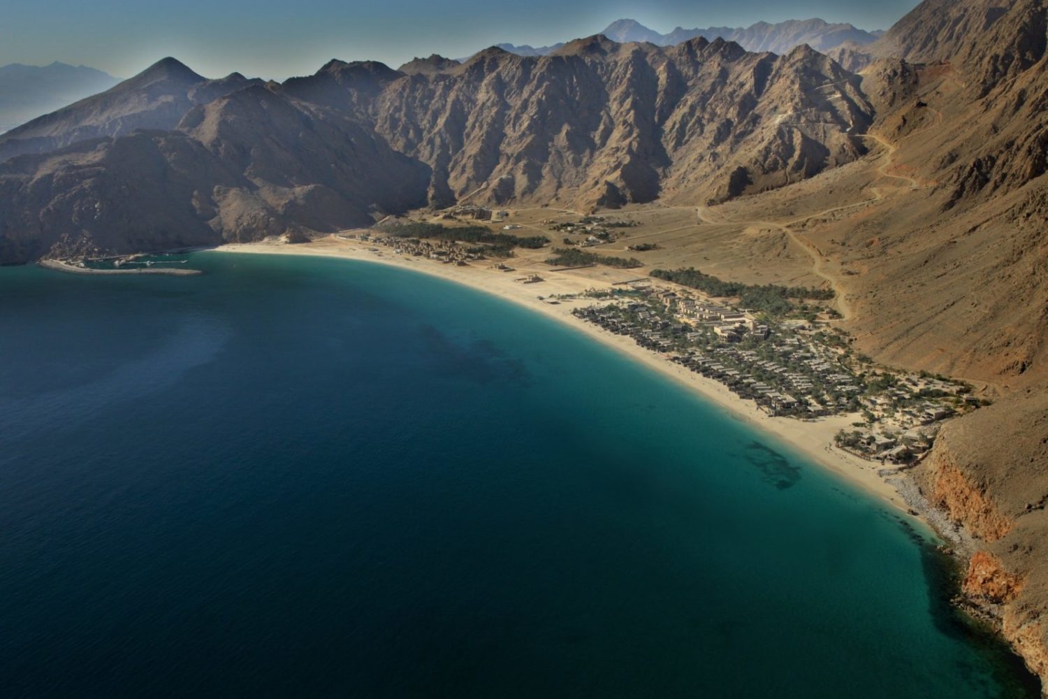 Dieses bezaubernde Fleckchen Erde wird wegen seiner fjordgleichen Ausblicke vor der Meerenge von Hormus auch das „Norwegen des Mittleren Ostens“ genannt. Es bietet die fast unwirklich schöne Kulisse für die Villenlandschaft des Luxus-Refugiums im Stil eines traditionell omanischen Dorfes, das ausschließlich mit landestypischen Materialien errichtet wurde.