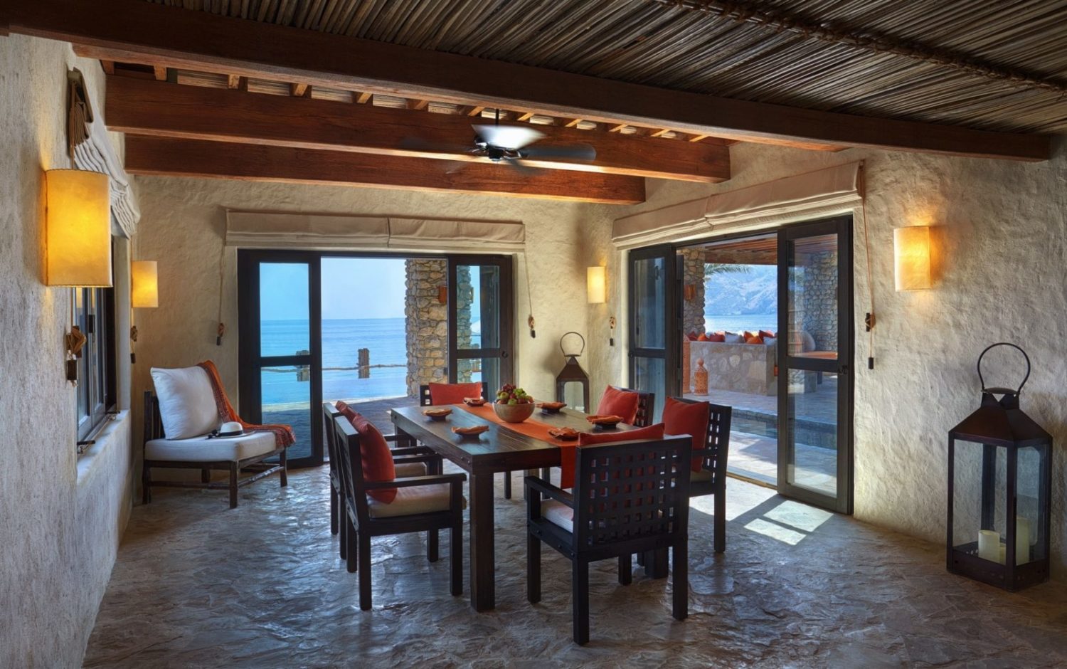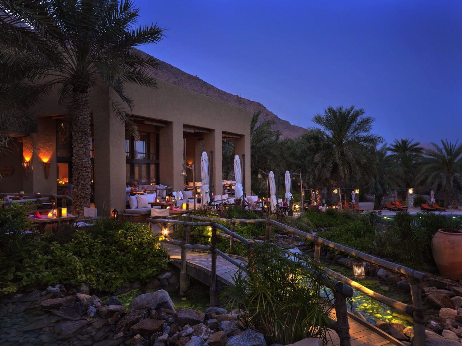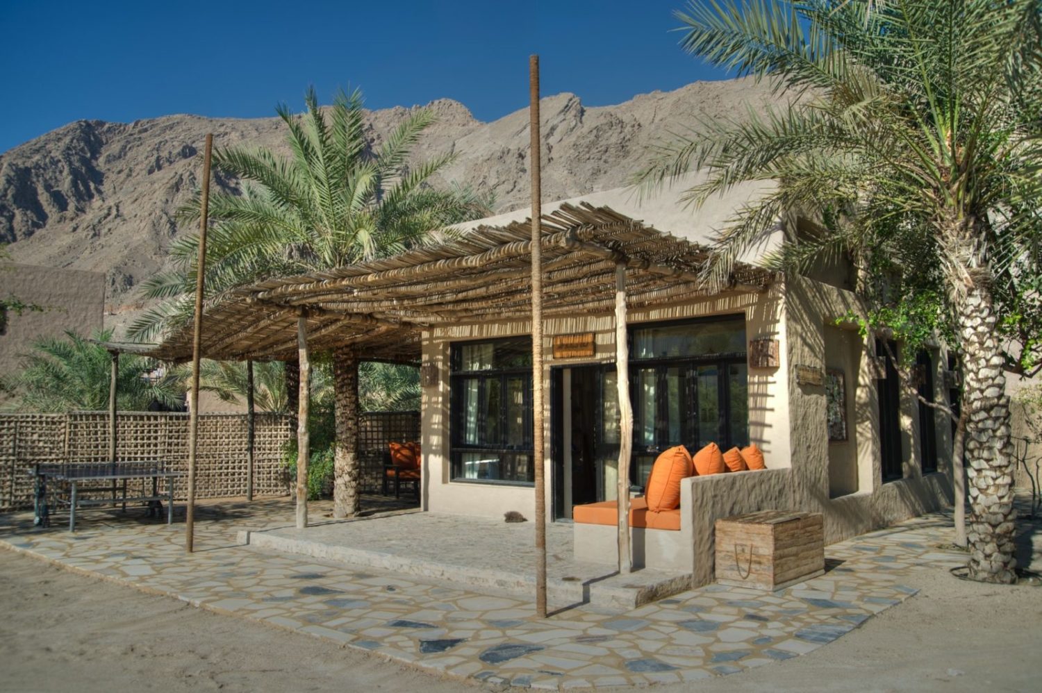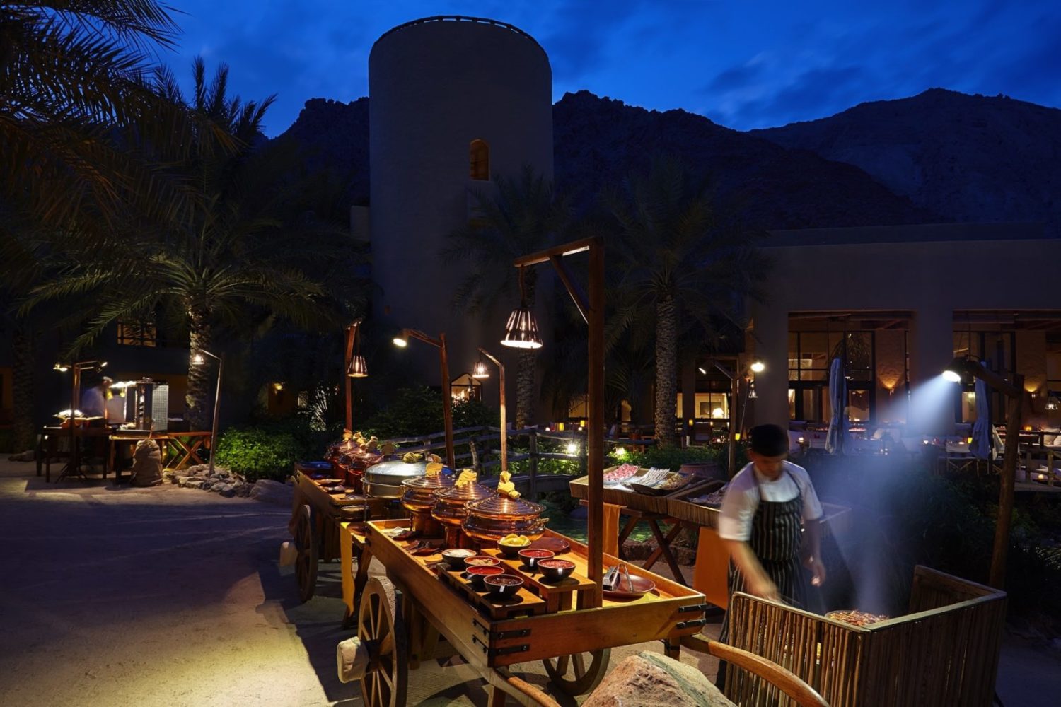 Dieses bezaubernde Fleckchen Erde wird wegen seiner fjordgleichen Ausblicke vor der Meerenge von Hormus auch das „Norwegen des Mittleren Ostens“ genannt. Es bietet die fast unwirklich schöne Kulisse für die Villenlandschaft des Luxus-Refugiums im Stil eines traditionell omanischen Dorfes, das ausschließlich mit landestypischen Materialien errichtet wurde.