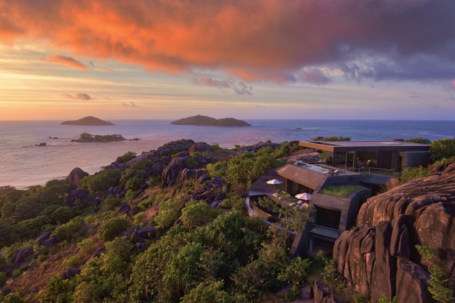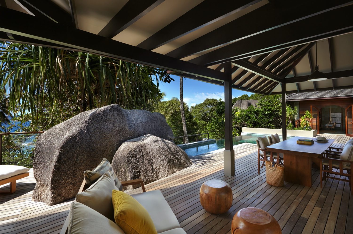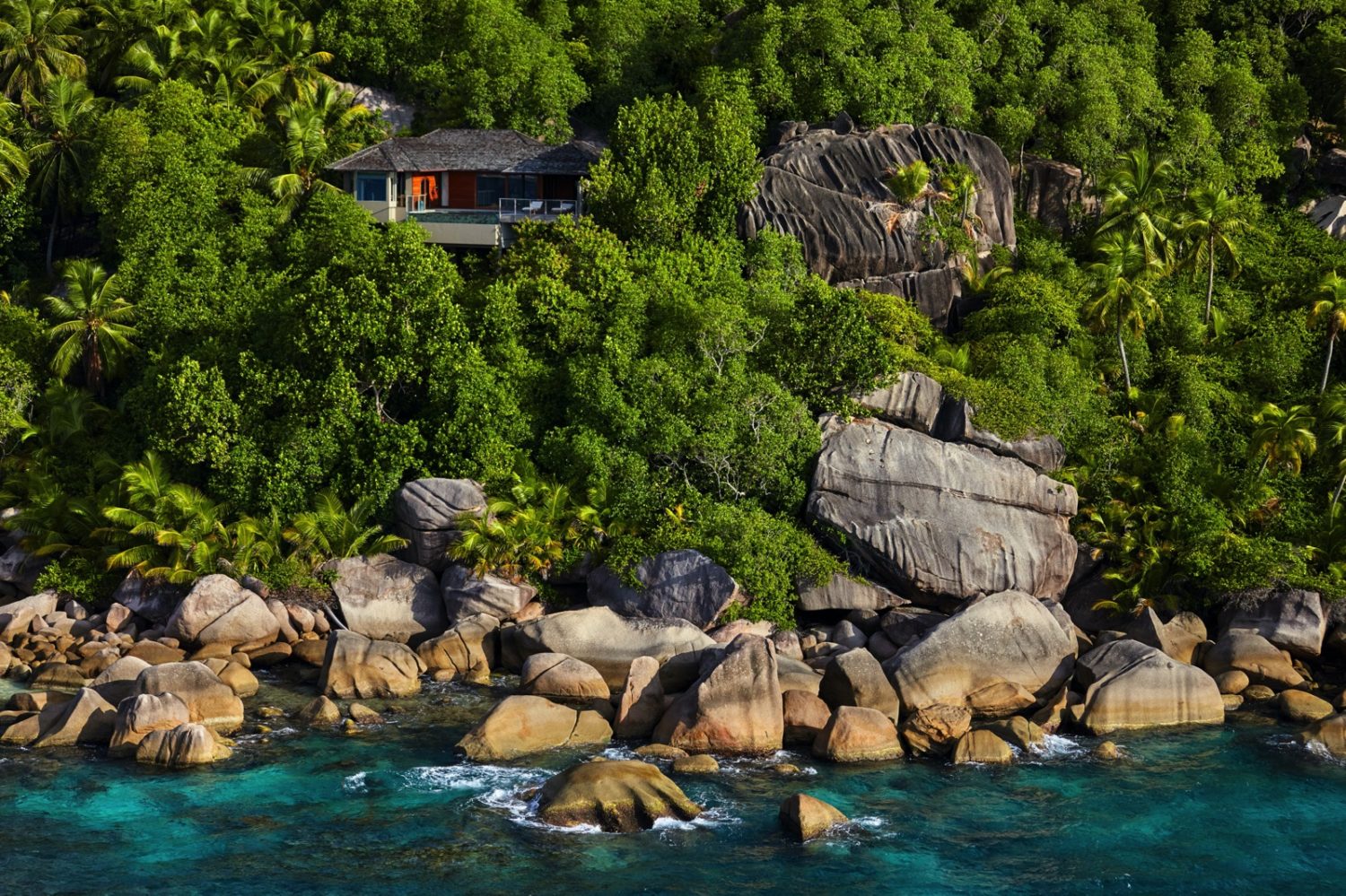 Malerisch auf einem Granit-Kliff nahe Dining-Bereich, Hauptpool und dem ikonischen Grande Anse Beach gelegene Villa mit Meerblick für Familien oder Gruppen. Die Schlafzimmer sind durch einen gemeinsamen Wohnbereich voneinander getrennt, mit begehbarem Kleiderschrank und zwei Ensuite-Badezimmern. Mehrere Liegestühle stehen auf dem großen Außendeck zu Verfügung sowie ein Familienesstisch. Mit privatem Infinity-Pool (40 Quadratmeter) und Wasserliege.
