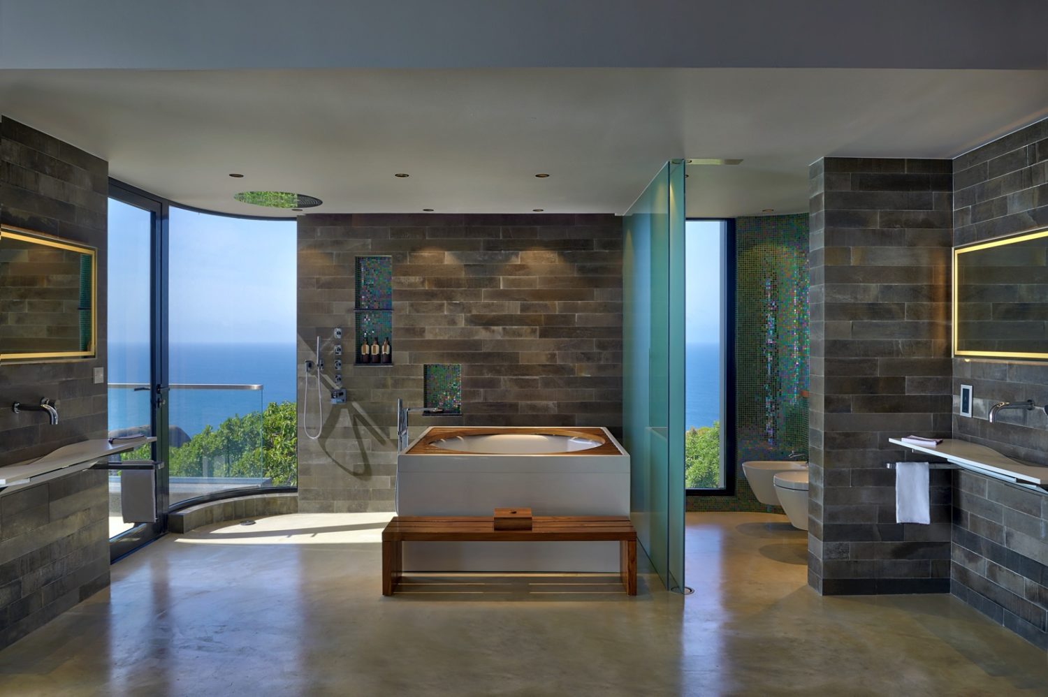 Zweistöckiges, erhöht liegendes XXL-Anwesen mit deckenhohen Fenstern und Traum-Ausblick auf’s Meer. Das Hauptschlafzimmer mit Ensuite Bad und Plunge Pool auf der eigenen Terrasse liegt im ersten Stock. Im Erdgeschoss befinden sich weitere drei Schlafzimmer mit Ensuite Bädern sowie einem großen Lounge-Bereich mit großartigen Kunstwerken, voll ausgestatteter Gourmet-Küche mit Weinkeller und Bar sowie einer großen möblierten Terrasse mit Infinity Pool.
