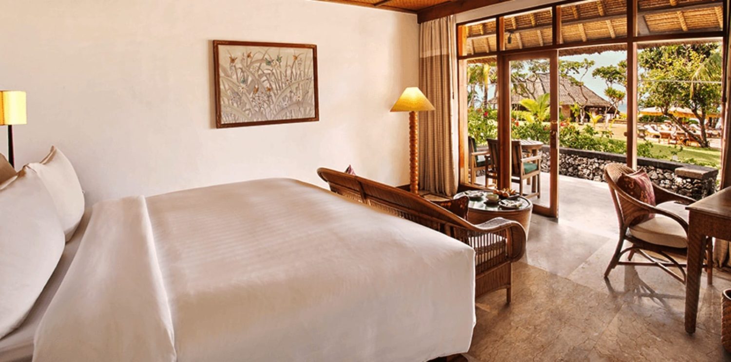 Zur Auswahl stehen Luxury Lanai Rooms Garden View (55-60 qm) in Bungalows mit Standardausstattung und Terrasse mit Gartenblick, Luxury Lanai Rooms Partial Ocean View (55-60 qm) mit eingeschränktem Meerblick, etwas komfortabler ausgestattete, frei in nächster Nähe zum Strand stehende Luxury Villen Ocean View (ca. 200 qm mit Terrasse) inklusive Bad mit separater Dusche, privatem Garten (nicht einsehbar) und Terrasse mit Meerblick, Luxury Garden View Villen with private Pool (ca. 350 qm mit Terrasse) mit gleicher Ausstattung, jedoch Terrasse mit privatem Pool (10×6 m) und Gartenblick, Luxury Partial Ocean View Villen with private Pool (ca. 400 qm inklusive Terrasse) wie Luxury Garden View Villa Pool, jedoch mit seitlichem Meerblick, Royal Ocean View Villen with private Pool (ca. 400 qm mit Terrasse) traditionell mit Strohdach, getrenntem Wohn- und Schlafzimmer, zwei Badezimmern, Kitchenette, Terrasse mit privatem Pool (8×5 m) und direktem Meerblick.