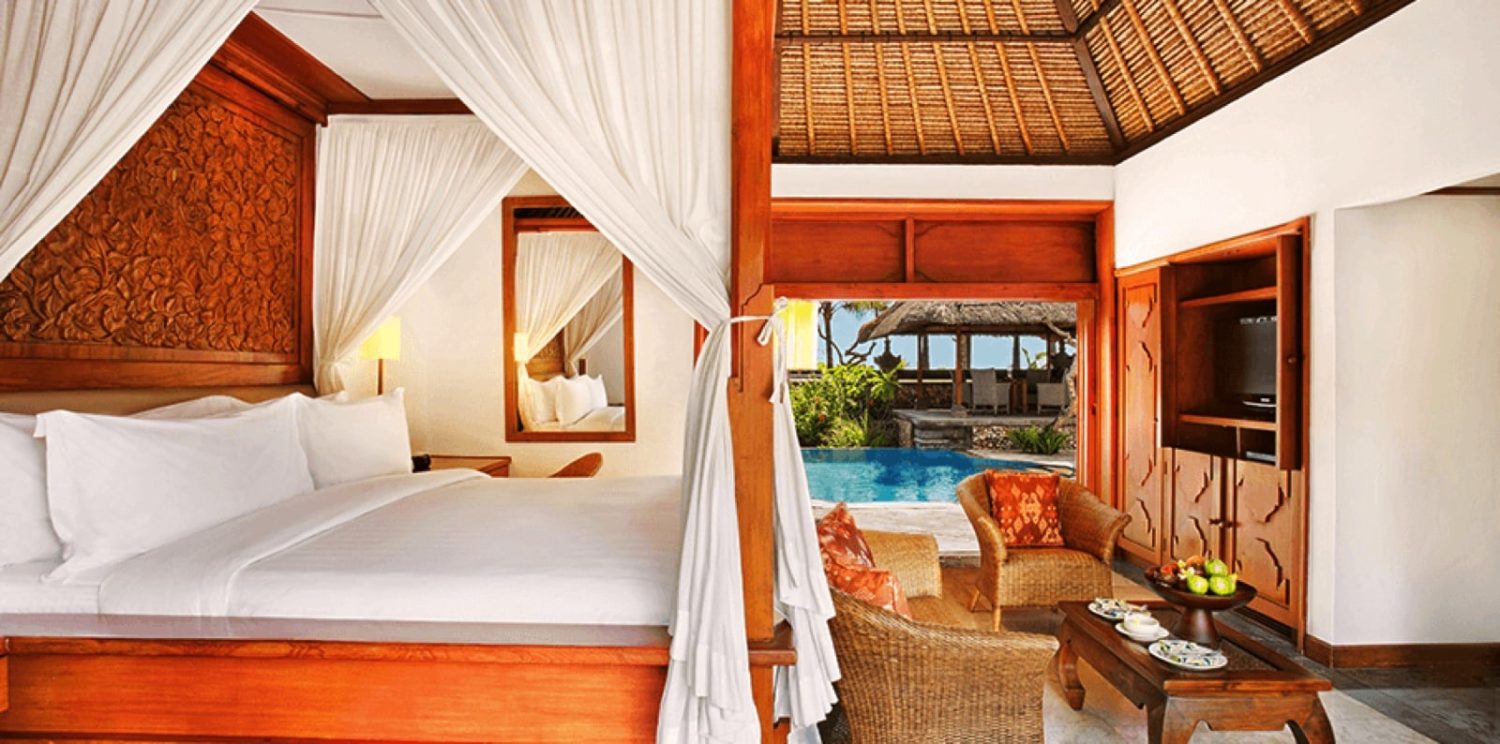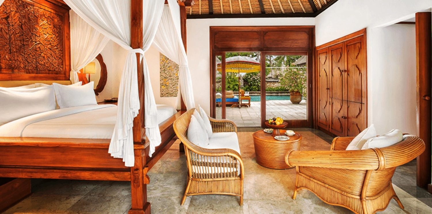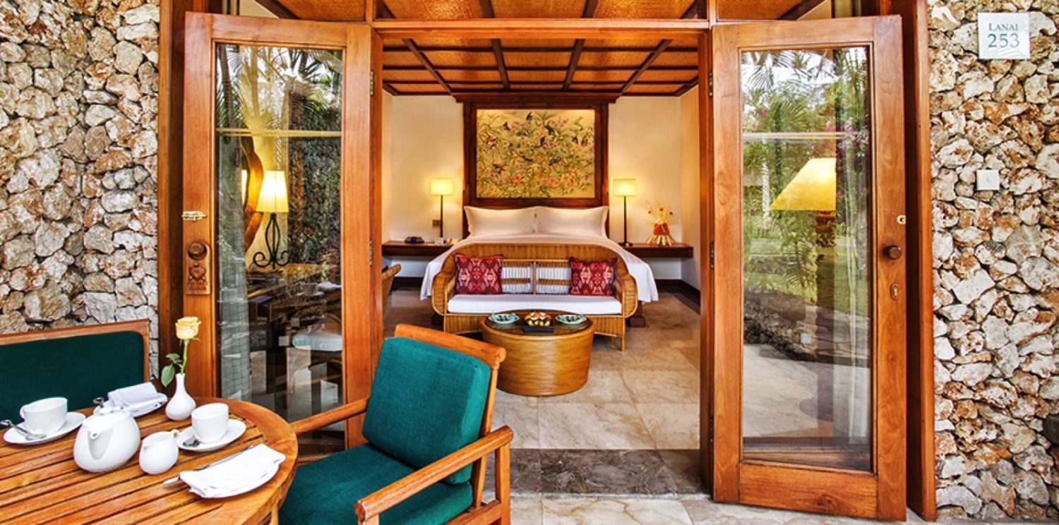 14 freistehende Villen und 60 Lanais (Bungalows mit je 4 Wohneinheiten) verteilen sich großzügig und unaufdringlich über die Anlage. Sie wurden im Stil eines balinesischen Dorfes erbaut und spiegeln die traditionelle Architektur sowie das kulturelle Erbe Balis eindrucksvoll wider. Alle Unterkünfte sind ausgestattet mit einem luxuriösen Bad mit Glasfront und Gartenblick, einer im Marmorboden eingelassenen Badewanne, separater Dusche, Föhn, Bademantel sowie einem Wohnraum mit Kingsize-Bett oder Hollywood-Twin-Bett, begehbarem Kleiderschrank, Telefon, Satelliten-TV, iPod Docking Station, DVD-Player, WLAN, Safe, Minibar, Tee- und Kaffeezubereiter, Klimaanlage, sowie einer privaten Terrasse.