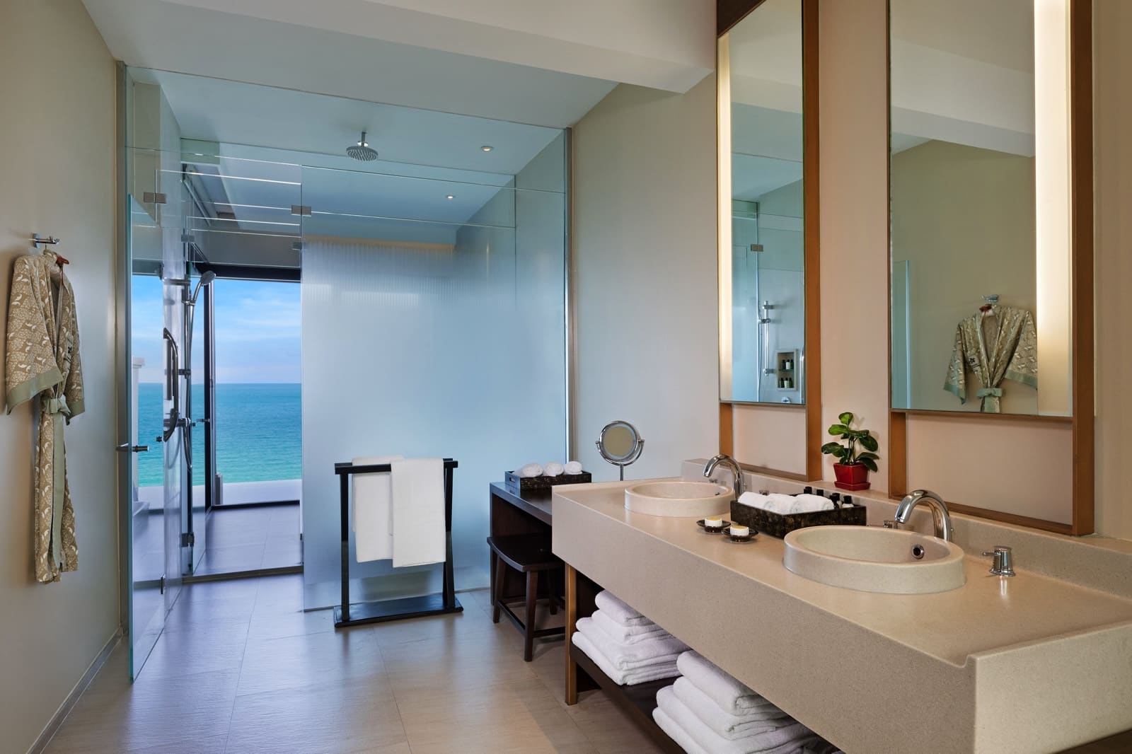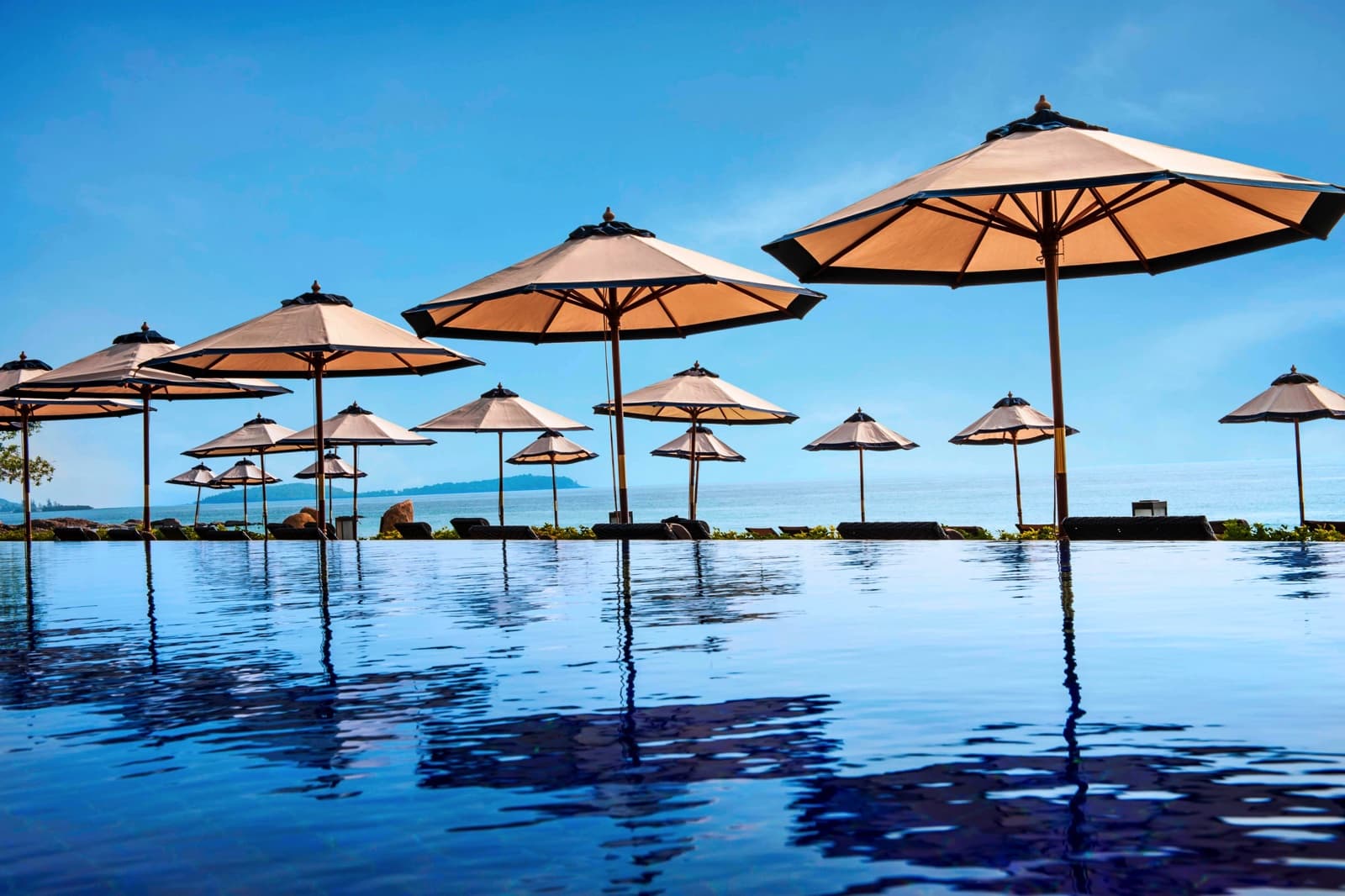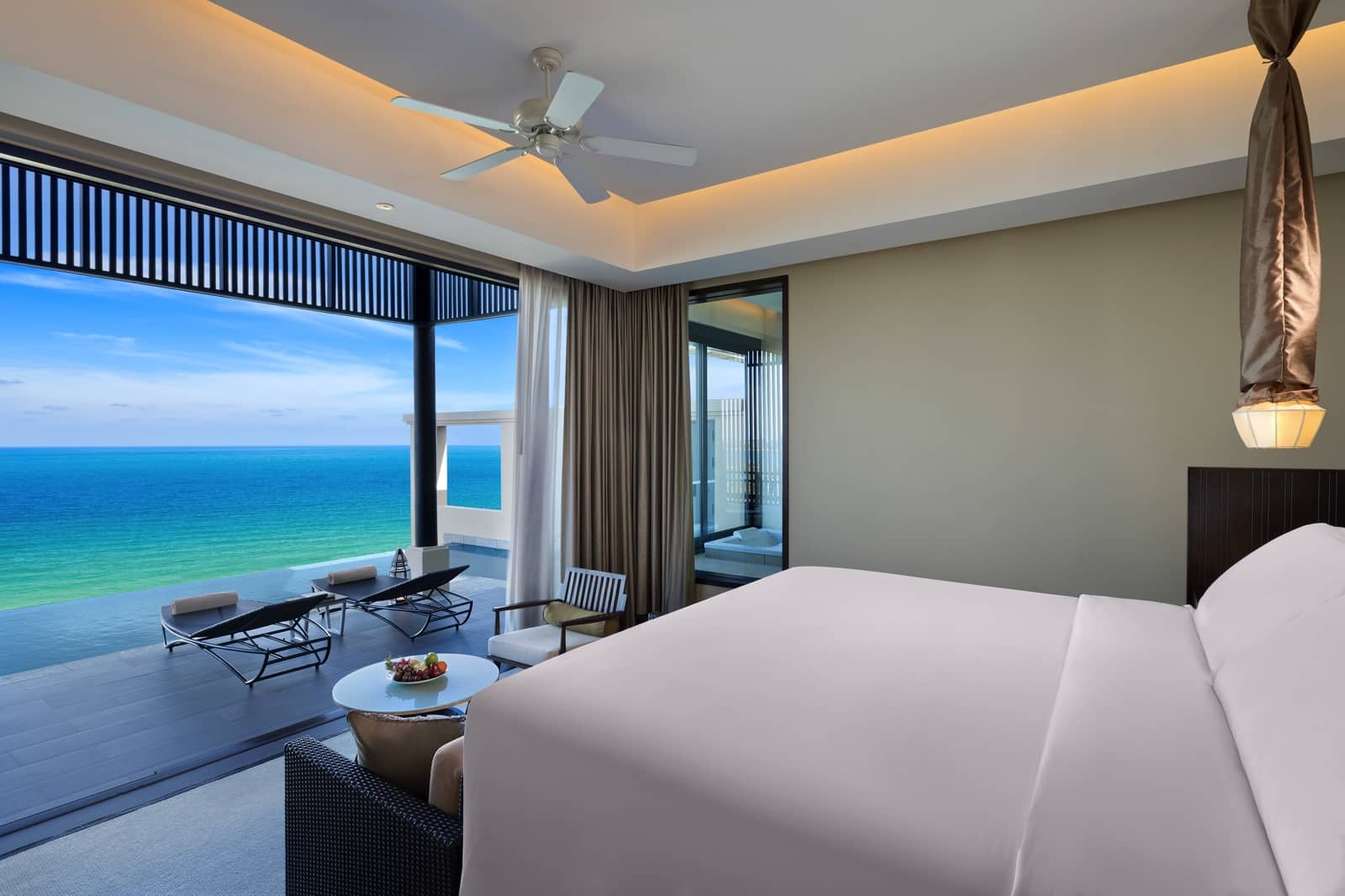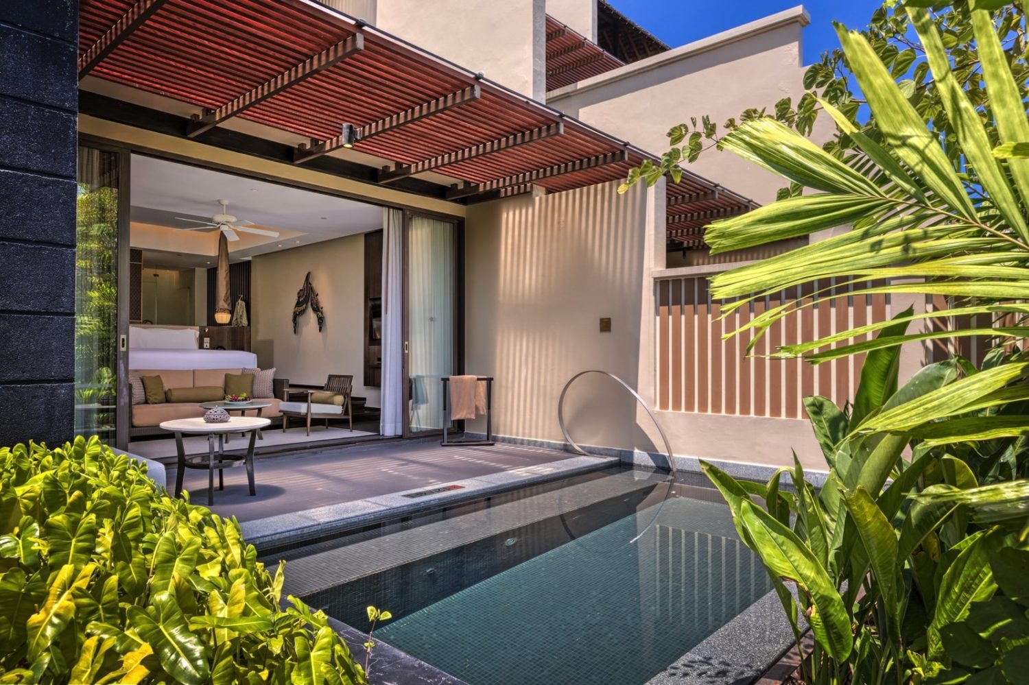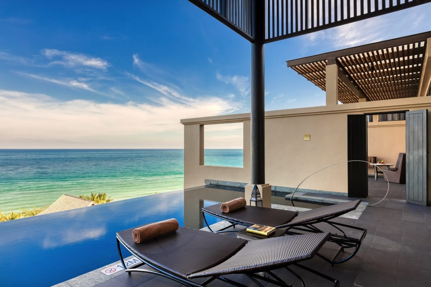 Zur Auswahl stehen Jungle One Bedroom Pool Suite (86 qm) mit Gartenblick, Ocean Pool One Bedroom Suiten (86 qm) mit eingeschränktem Meerblick, Premium Ocean Pool One Bedroom Suiten (86 qm) in oberen Etagen mit Meerblick, à la carte Frühstück und einem persönlichen Buttler-Service, Grand Ocean View Pool Suite (128 qm) mit zwei Sonnenliegen, einem größeren Pool (8 x 2,5 m) und Panorama-Meerblick. Während Ihres Aufenthalts in einer geräumigen Tropical Pool Villa (211 qm) und der frischrenovierten Vana Belle Ocean View Pool Suite (172 qm) steht den Gästen ein persönlicher Butler und zusätzlich ein à la carte Frühstück zur Verfügung.