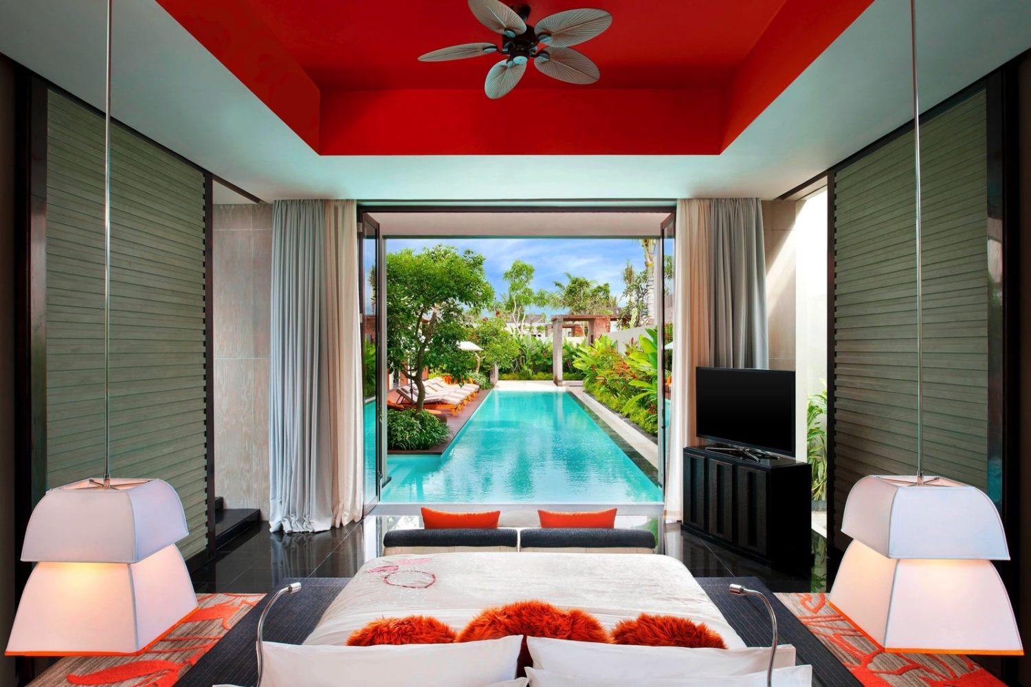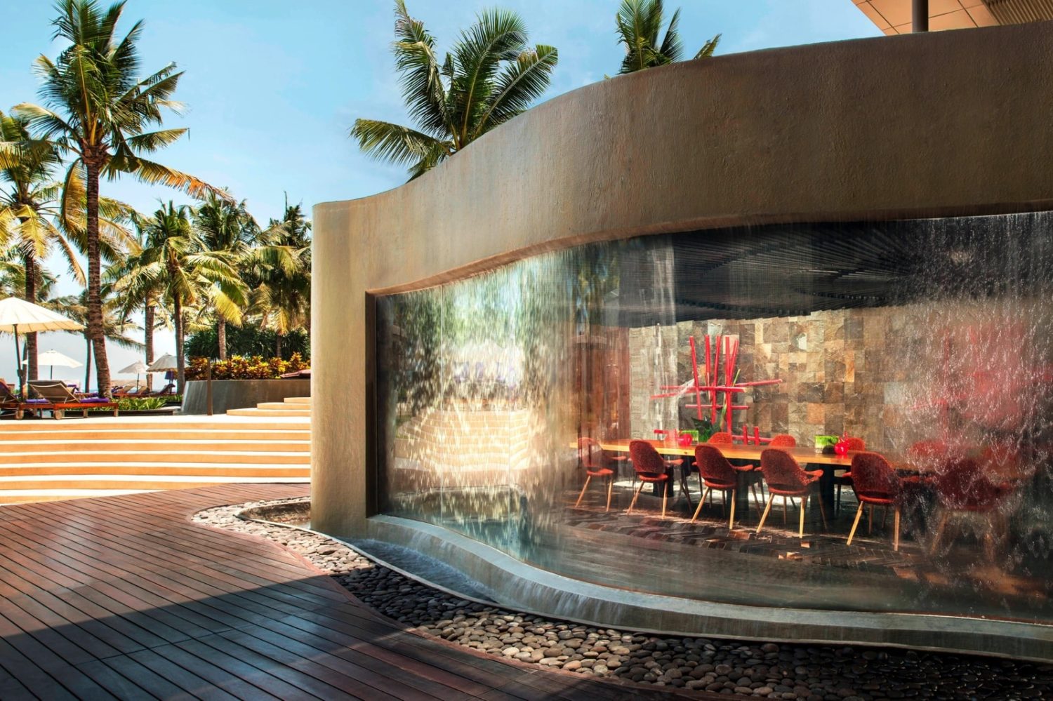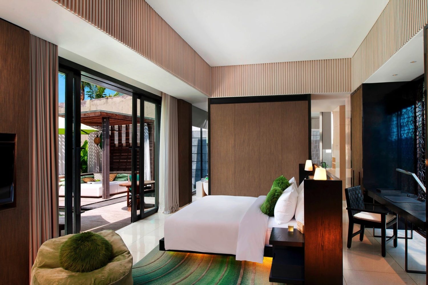 Die 237 Zimmer und Suiten sind überaus stylish und luxuriös eingerichtet. Natürliche Materialien und Farben prägen das Ambiente und verleihen der ultramodernen Einrichtung ein behagliches Flair. Zur Standardausstattung zählen Kingsize- oder Queensizebetten, Telefon, WLAN (ohne Gebühr), TV, BOSE®-Soundsystem, iPod-Dockingstation, Minibar, Kaffeezubereiter, Safe, Klimaanlage, ein luxuriöses Badezimmer mit Monsundusche und separatem WC, Bademänteln und Slippern sowie 24-Stunden „Whatever Whenever-Service“ und Balkon oder Terrasse. Zur Auswahl stehen folgende Kategorien: Wonderful Garden View Retreat (ca. 64 qm) mit Standardausstattung und Blick auf den Garten, Spectacular Ocean Facing Retreat (ca. 64 qm) mit zusätzlich Balkon und Panoramablick auf das Meer, die frei stehenden, von Mauern geschützten Marvelous One Bedroom Pool Villen (ca. 225 qm) mit separatem Wohnzimmer, großzügigem Bad inklusive separater Dusche und Badewanne, geräumiger Terrasse mit Tagesbett, privatem Pool (ca. 43 qm) sowie BBQ-Grillplatz auf Anfrage und WOW 2 Bedroom Pool Villen (ca. 352 qm) mit einem zusätzlichen Schlaf- und Badezimmer sowie größerem Privat-Pool (ca. 55 qm).