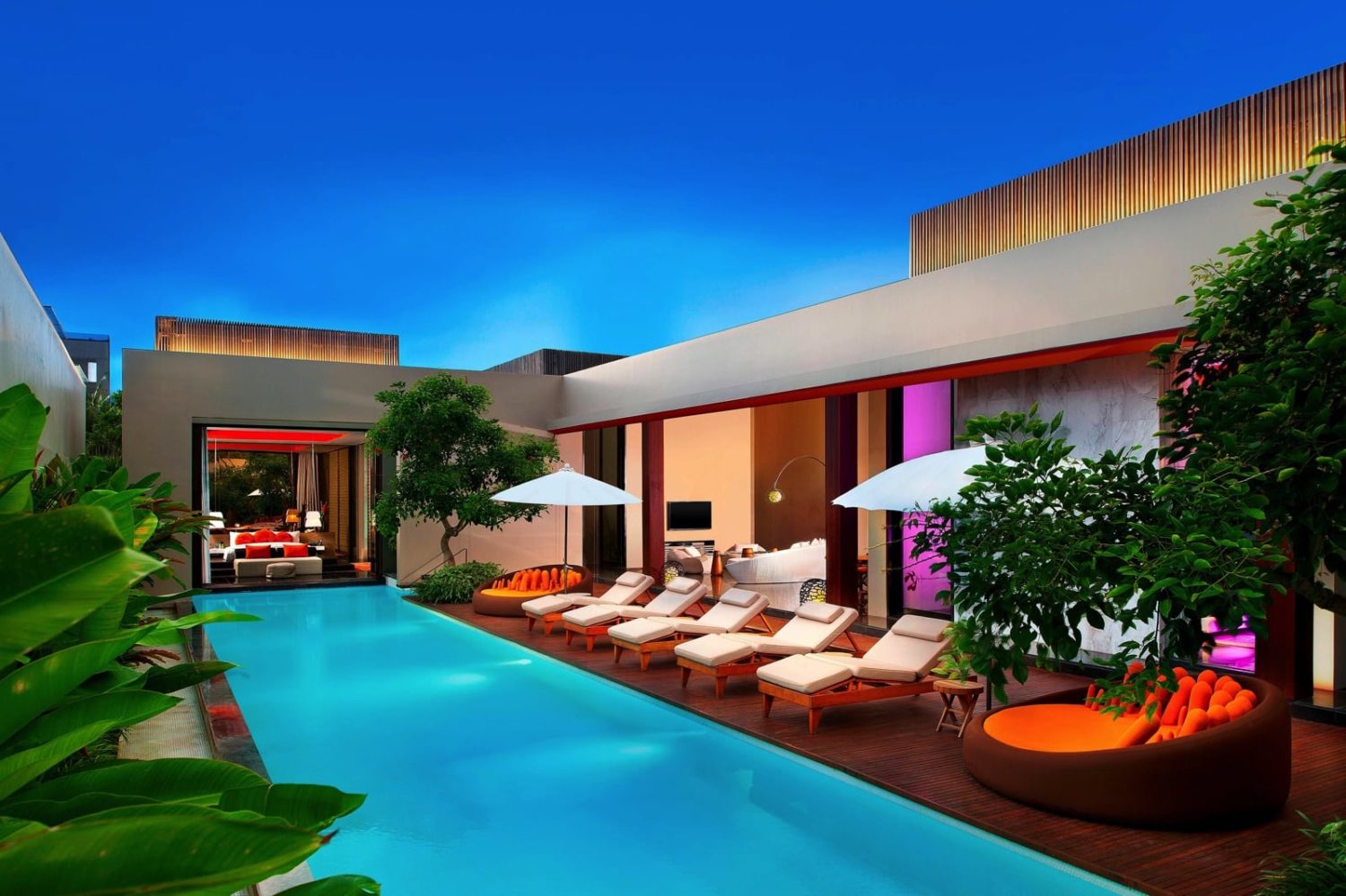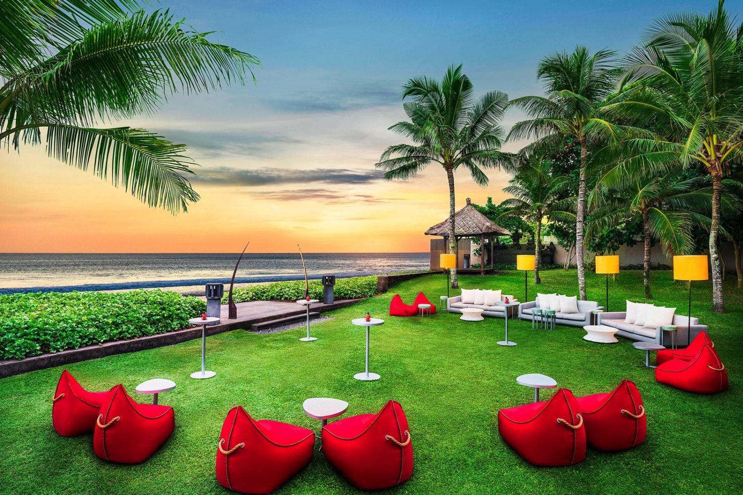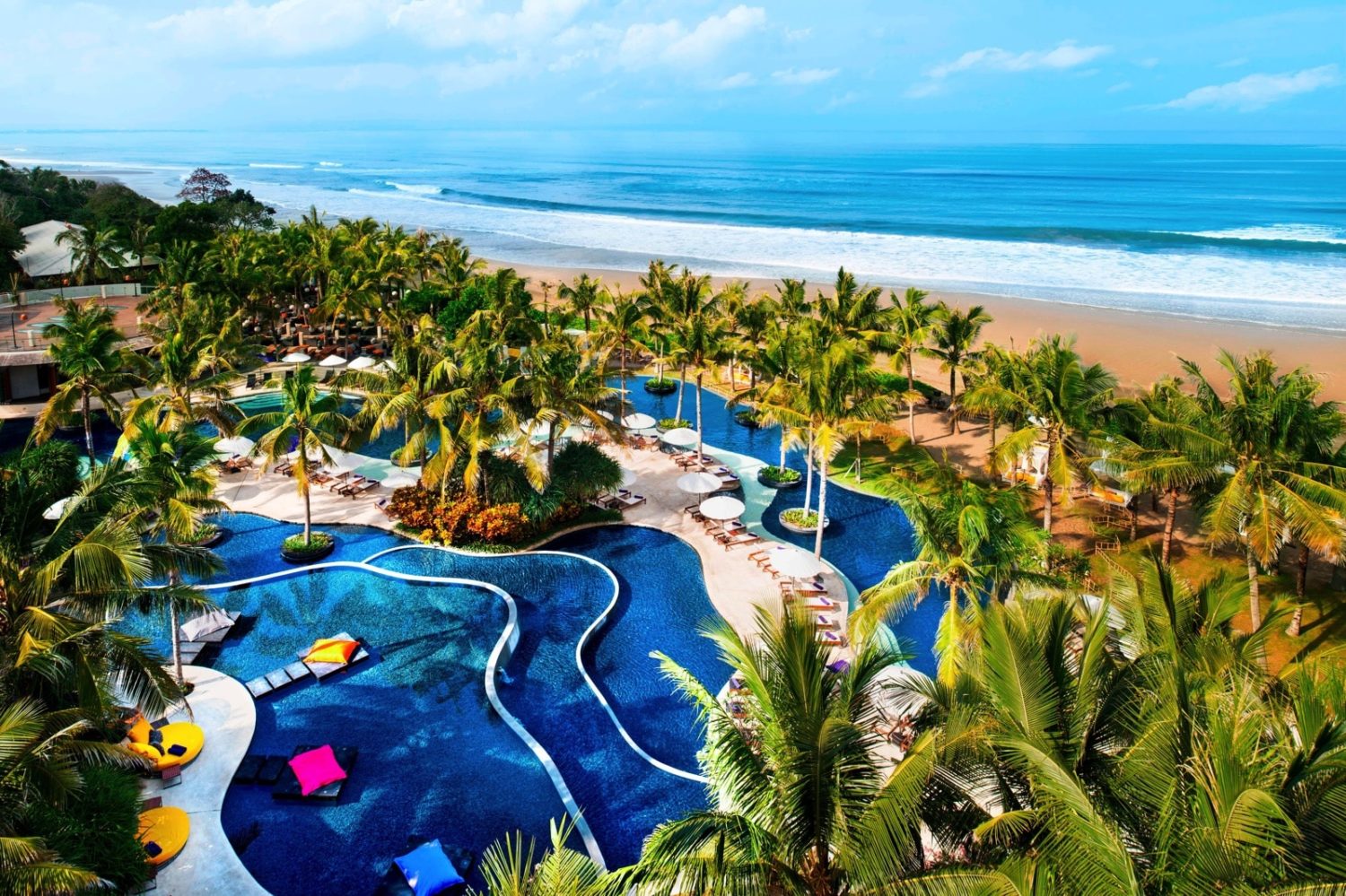 Von der Liegelandschaft am ca. 420 qm großen Pool WET® genießen Gäste den Blick auf die spektakuläre Strand-Szenerie sowie Balis berühmten Sonnenuntergang.