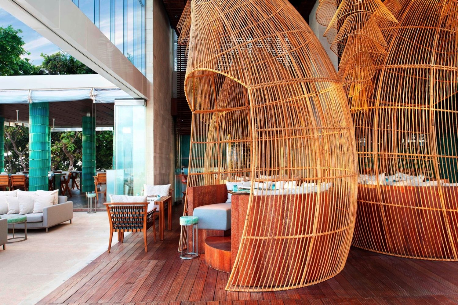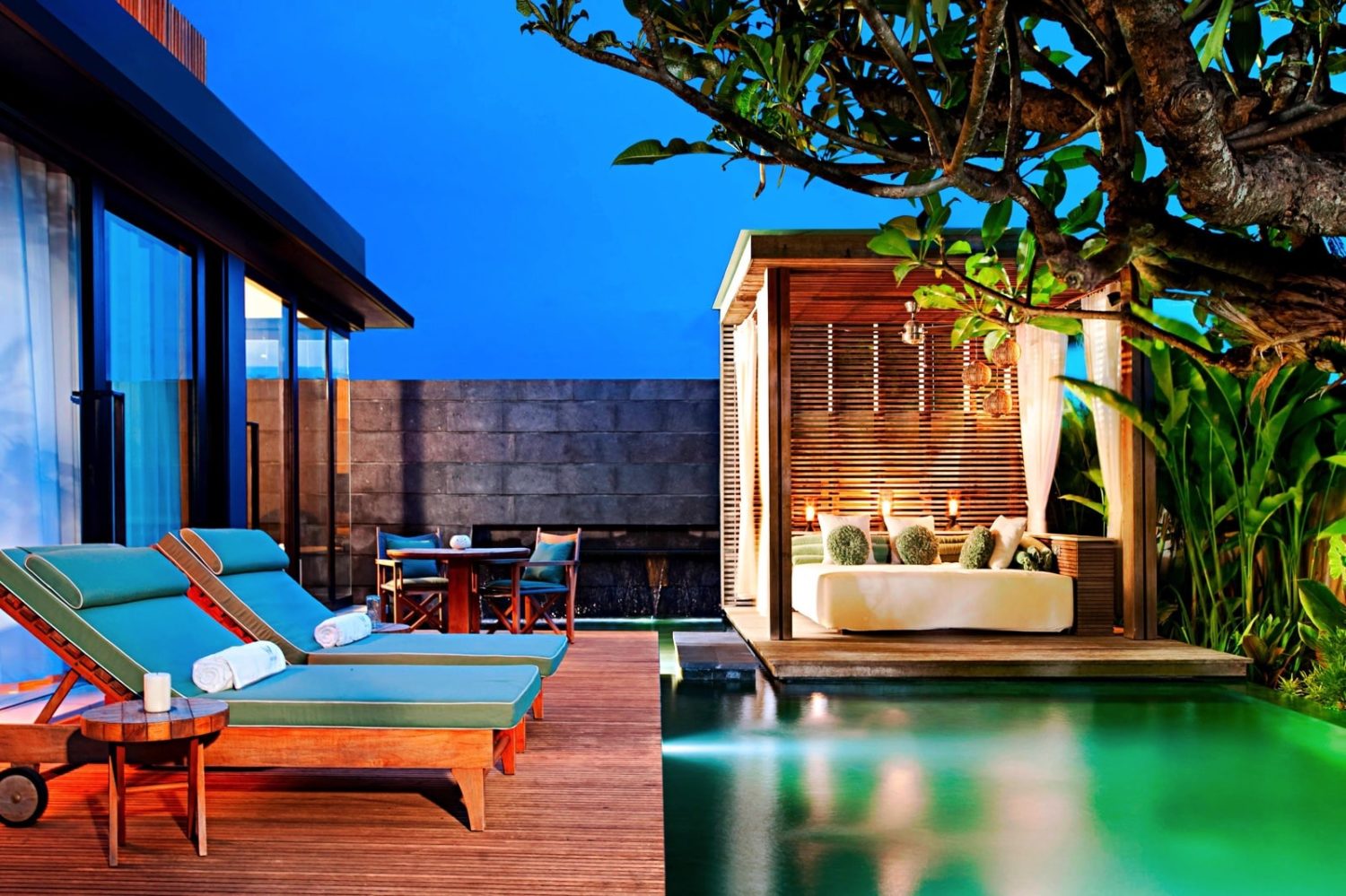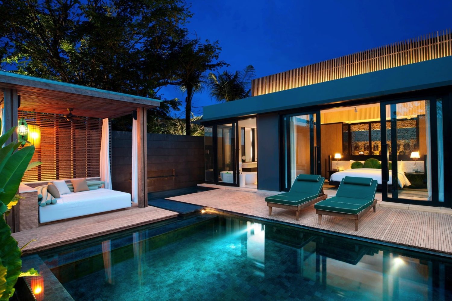 Von der Liegelandschaft am ca. 420 qm großen Pool WET® genießen Gäste den Blick auf die spektakuläre Strand-Szenerie sowie Balis berühmten Sonnenuntergang.