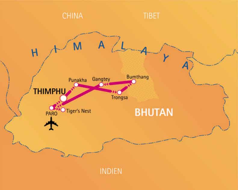 Auf dieser eindrucksvollen Privatreise lernen Sie weiterhin nicht nur die Städte Paro, die Hauptstadt Thimphu, Punakha, Bumthang und Gangtey kennen, sondern Sie erhalten auch einen Einblick in das traditionelle und religiöse Leben der Bhutanesen. Der berühmte Trek zum Tiger´s Nest, einem der absoluten Highlights des Landes darf hier natürlich auch nicht fehlen.